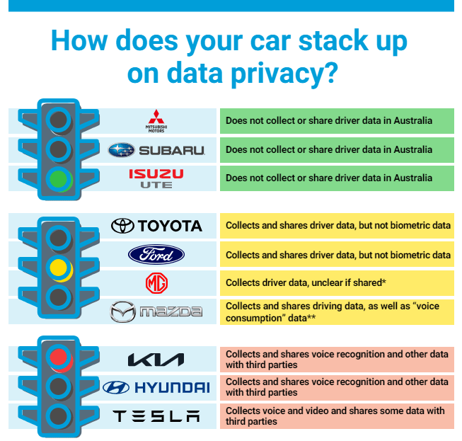 As três marcas que, por ora, saíram ilesas da investigação foram Mitsubishi, Subaru e Isuzu Ute, pois não possuem recursos de serviços conectados ativados nos veículos vendidos no mercado australiano.